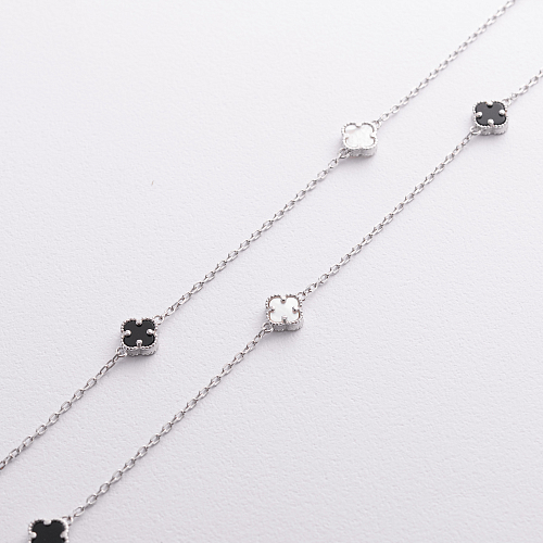 Серебряное колье "Клевер" (оникс, перламутр) 181356