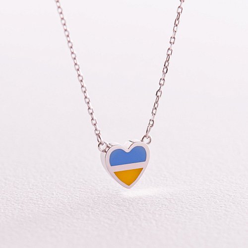 Колье "С Украиной в сердце" в серебре (голубая и желтая эмаль) 181236