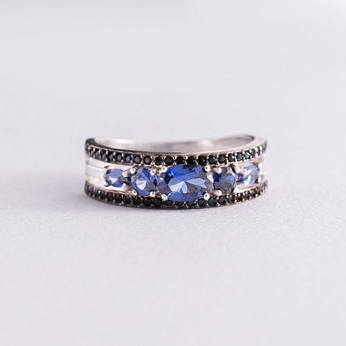 Серебряное кольцо с синтетическими сапфирами и фианитами 1370/1р-NSPH
