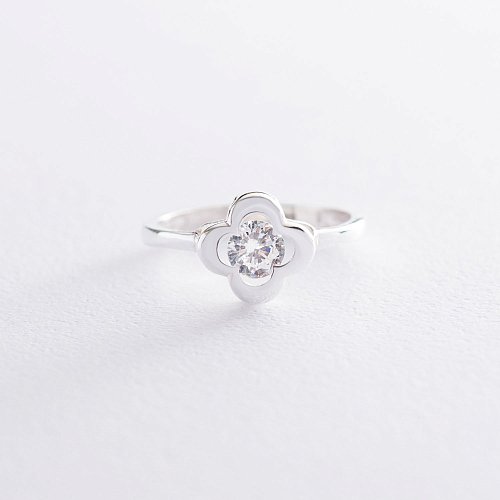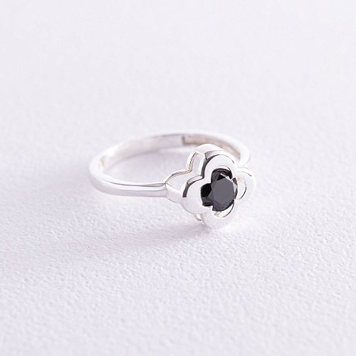Серебряное кольцо "Клевер" с черным фианитом 112002