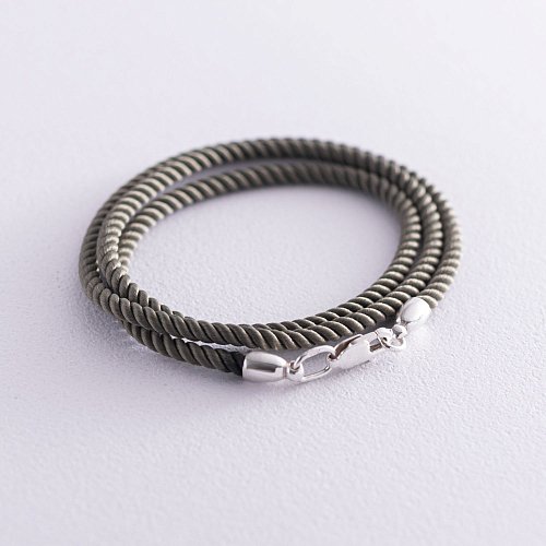 Шелковый шнурок цвета Хаки с гладкой серебряной застежкой (3мм) 18396