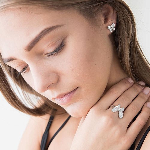 Серебряное кольцо "Бабочка" с фианитами 111724
