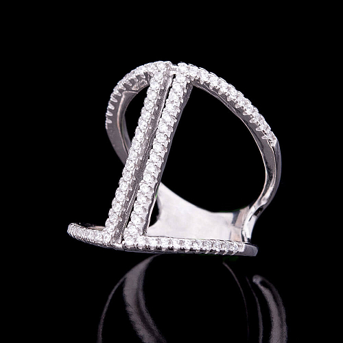Серебряное кольцо с фианитами (родий) 111730