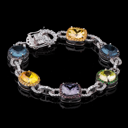Серебряный браслет (синтетическая шпинель, фианиты) б05