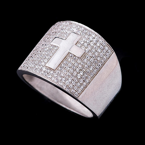 Серебряное кольцо с фианитами Украина (родий) 111272