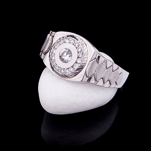 Серебряное кольцо с фианитами Украина (родий) 111285