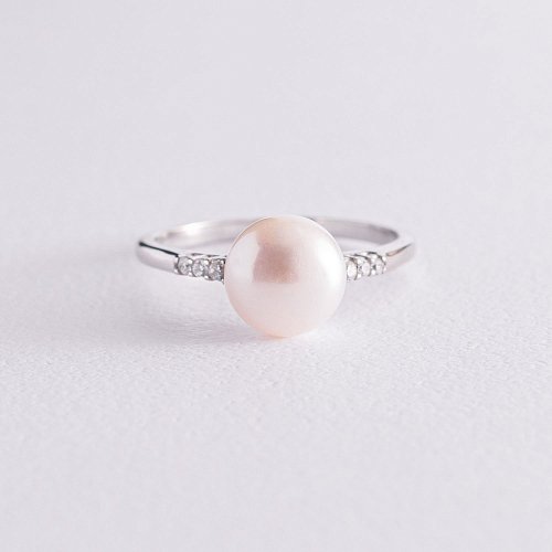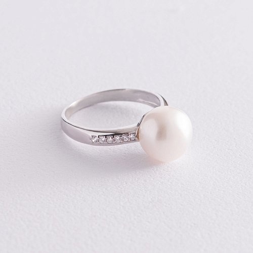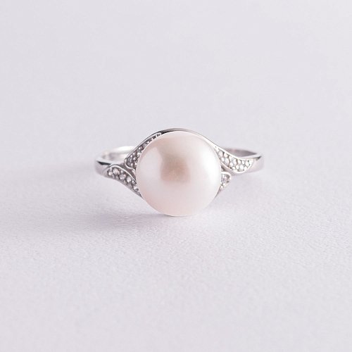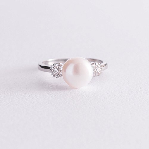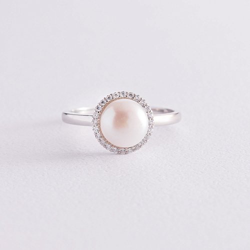 Серебряное кольцо с жемчугом и фианитами 1805/1р-PWT