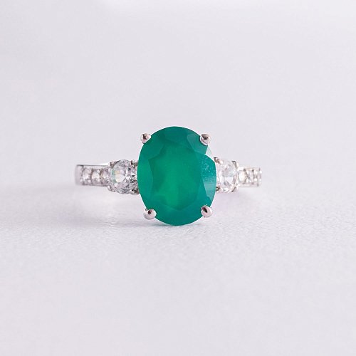 Серебряное кольцо (фианиты, агат) 1322/1р-GRAG