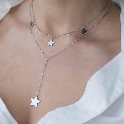 Двойное серебряное колье "Звездочки" с фианитами 18945