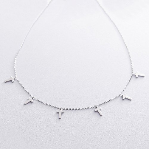 Двойное серебряное колье "Крестики" с фианитами 18939