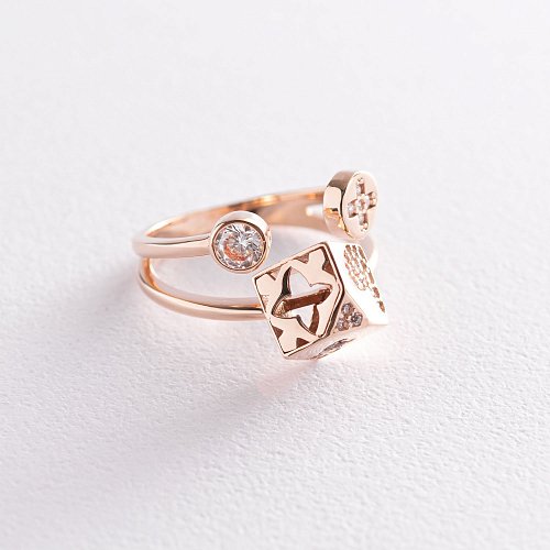 Золотое кольцо "Цветочки-сердце-клевер" с фианитами к05198