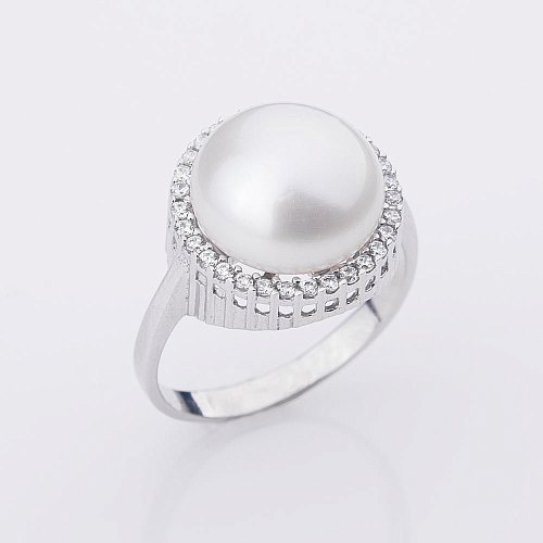 Золотое кольцо с фианитами и культ. пресн. жемчугом к02843
