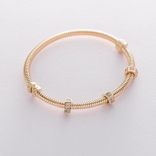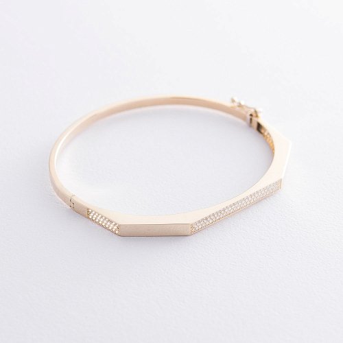 Жесткий браслет в желтом золоте (фианиты) б04415