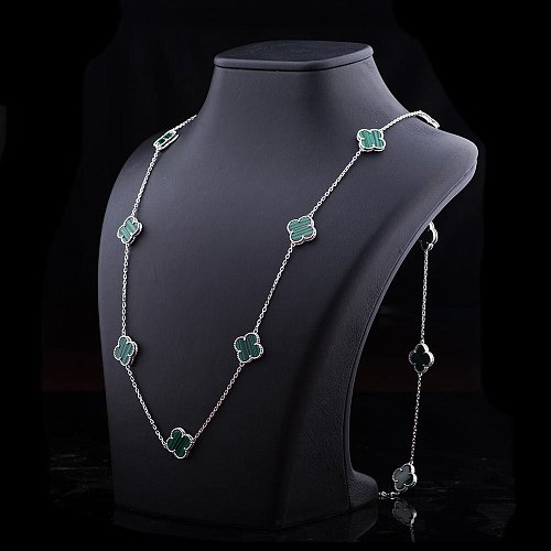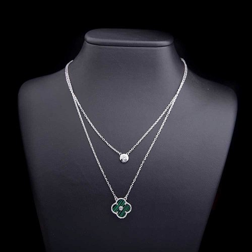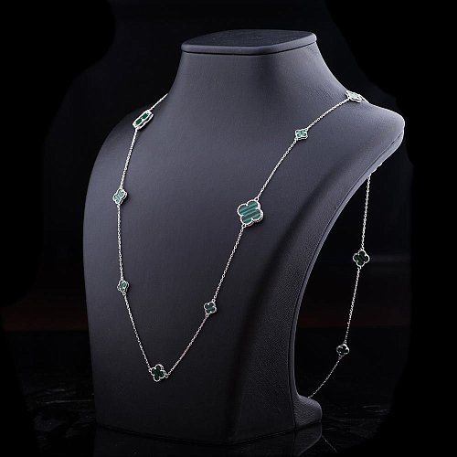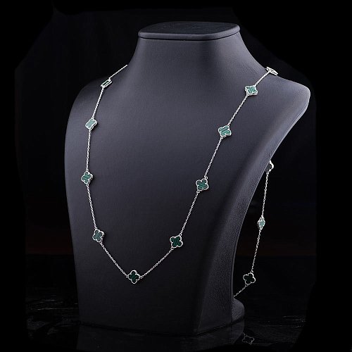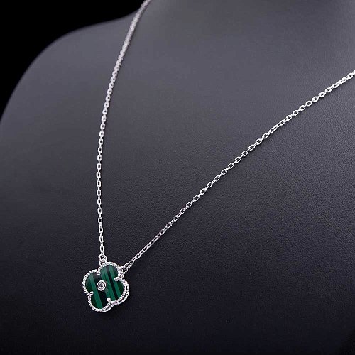 Серебряное колье "Клевер" (им. малахит) 18345