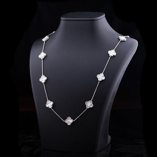 Серебряное колье "Клевер" (перламутр) 18223