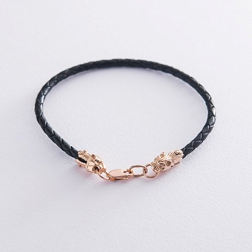 Кожаный браслет с золотой застежкой "Львиная сила" б02462