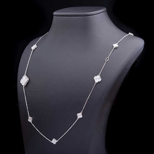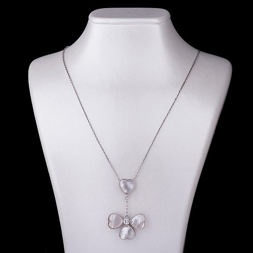 Родированое колье "Клевер" с перламутром (50см) 18188