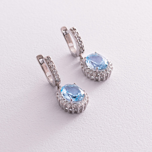 Серебряные серьги с голубым топазом и фианитами 121385
