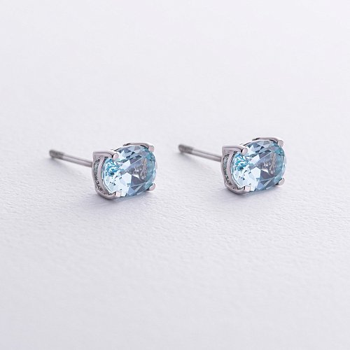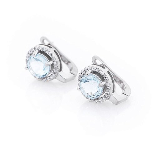 Серебряные серьги с голубыми топазами и фианитами 121334