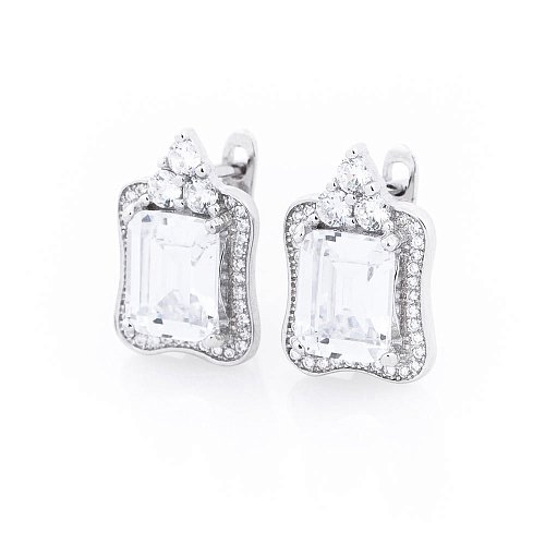 Серебряные серьги с фианитами (родий) 122098