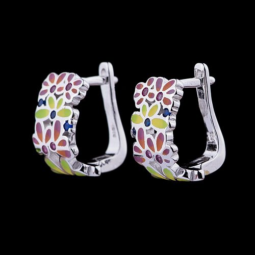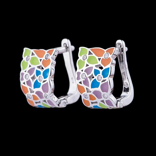 Серебряные серьги (фианиты, эмаль) 122017