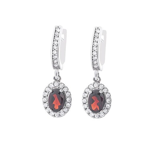 Серебряные серьги (альмандин, фианиты) 121055