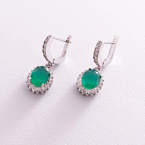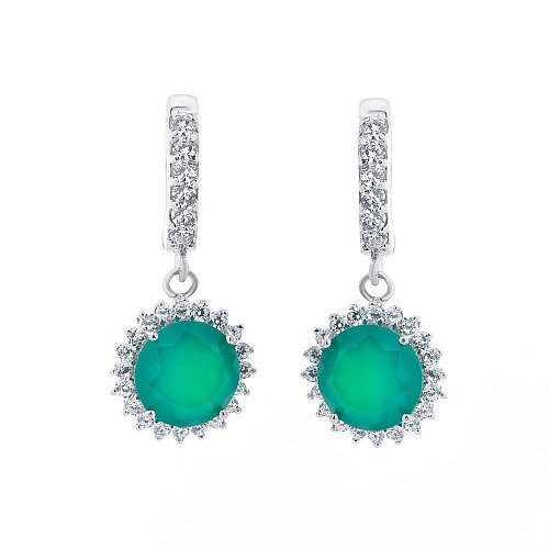 Женские серьги с хризопразом (фианиты) 121438
