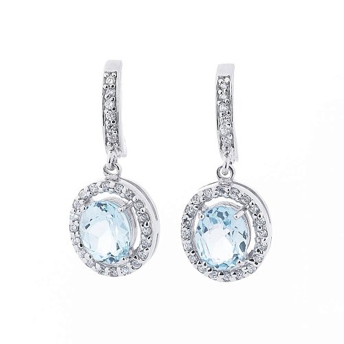 Серебряные серьги с голубым топазом и фианитами 121460