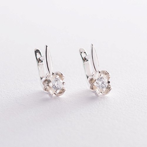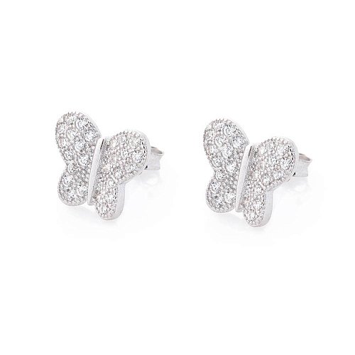 Серебряные серьги-гвоздики "Бабочки" с фианитами 121675