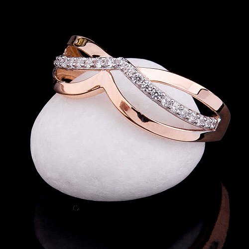 Двойное кольцо с фианитами из золота к04010