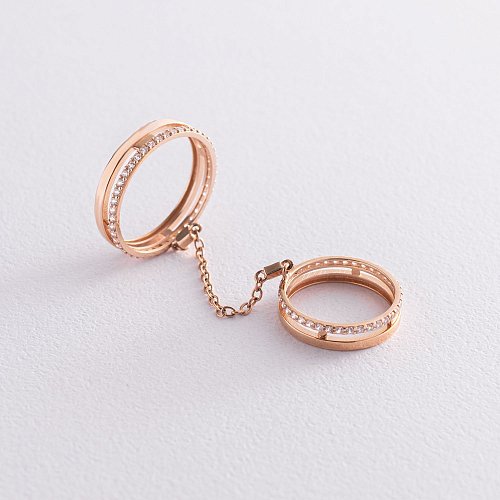 Двойное золотое кольцо на фалангу с фианитами к05513