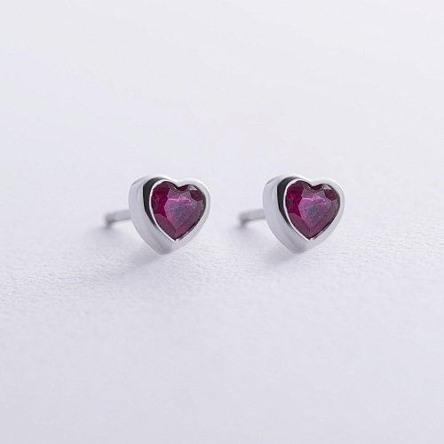 Золотые серьги - пусеты "Сердечки" (рубины) сб0531gl