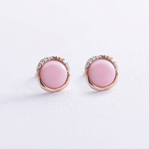 Золотые серьги - пусеты (розовый опал, бриллианты) сб0525sc
