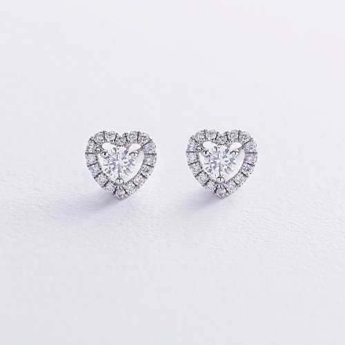 Золотые серьги - пусеты "Сердечки" с бриллиантами сб0506ca