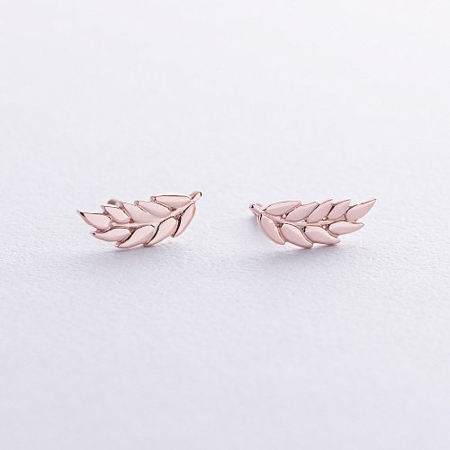 Серьги - пусеты "Колоски пшеницы" в красном золоте с08752