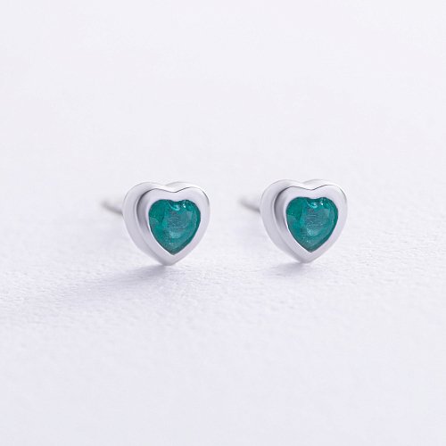 Золотые серьги - пусеты "Сердечки" с изумрудами сб0530gl