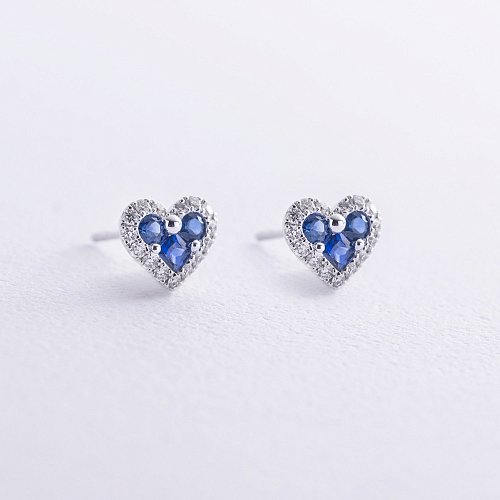 Золотые серьги - пусеты "Сердечки" (сапфиры, бриллианты) сб0508ca