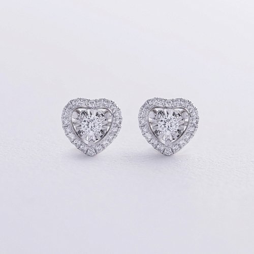 Золотые серьги - пусеты "Сердечки" с бриллиантами сб0506ca
