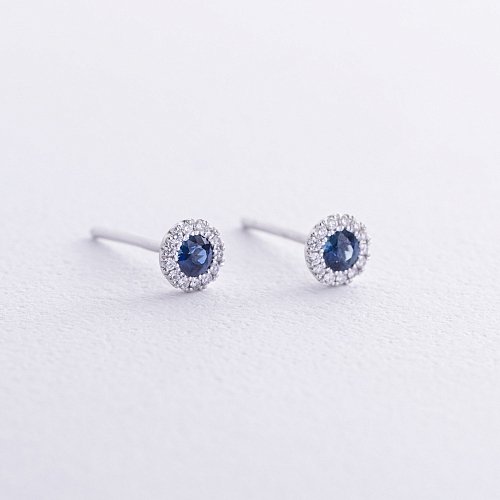 Золотые серьги - пусеты (сапфиры, бриллианты) сб0493gm