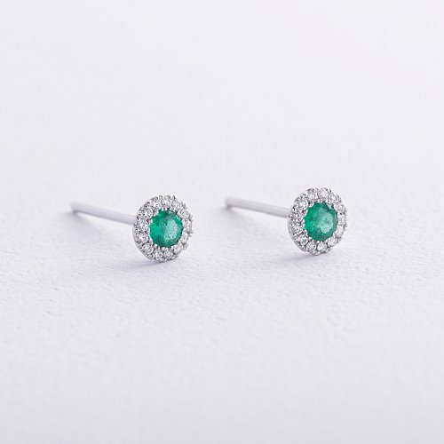 Золотые серьги - пусеты (бриллианты, изумруды) сб0529gm