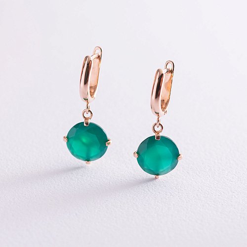 Золотые серьги "Влечение" с зеленым аметистом с05292