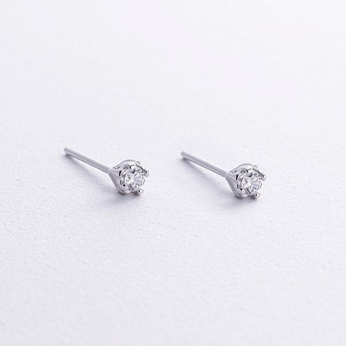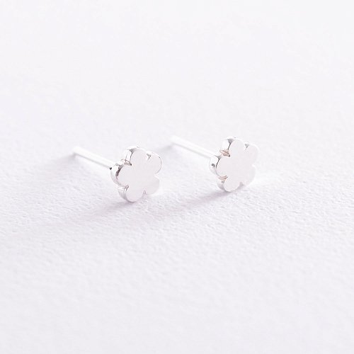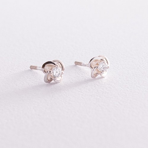 Золотые серьги-пусеты "Клевер" с черными фианитами с05620
