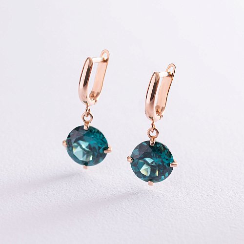Золотые серьги "Влечение" (синт. топаз "Лондон голубой") с05301
