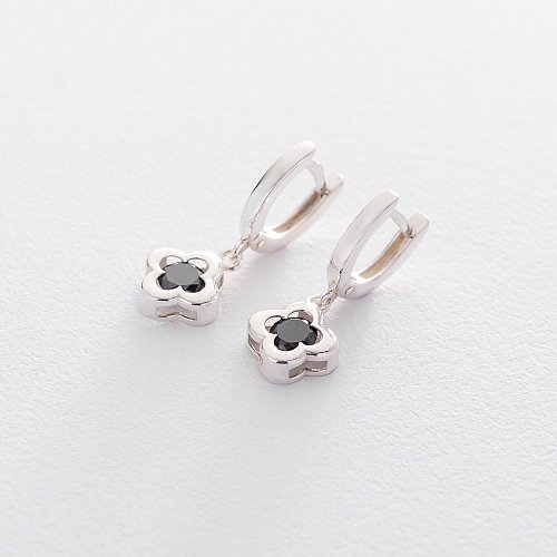 Серебряные серьги "Клевер" (черные фианиты) 122073