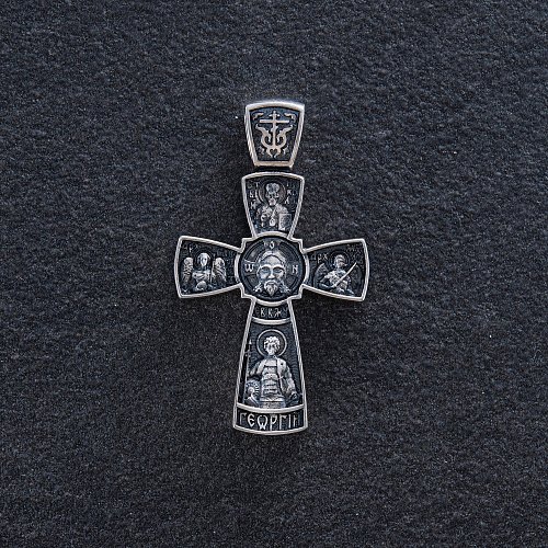 Серебряный православный крест с чернением "Спас Нерукотворный с предстоящими" 132558