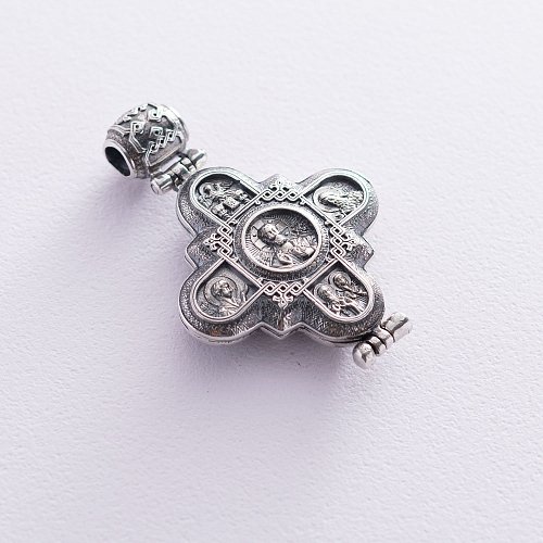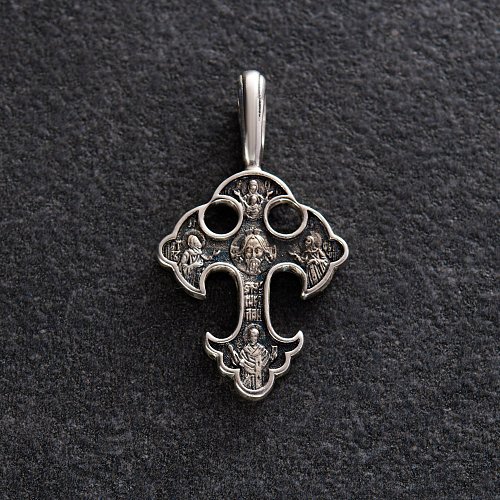 Серебряный православный крестик с чернением " Распятие. Божия Матерь" Воплощение". Пять святителей" 13437