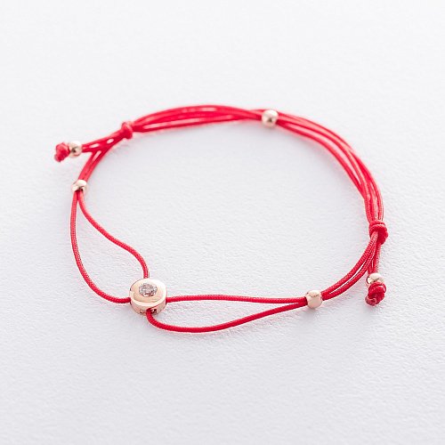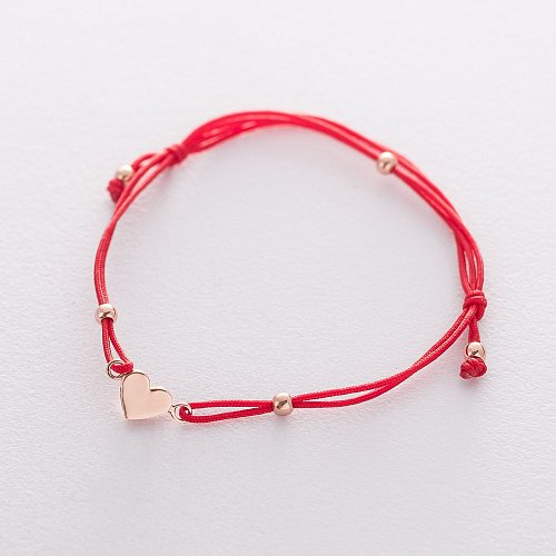 Браслет с красной нитью "Сердце" (красное золото) б04206