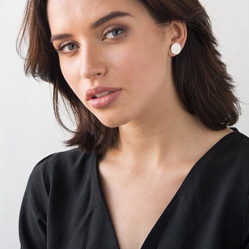 Серебряные серьги-пусеты "Кружочки" (матовые) 122514
