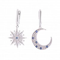 Серебряные серьги "Ночная тематика" (фианит) 122395