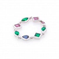 Оригинально смотрится россыпь в кольцах с природными камнями, где бриллианты, сапфиры в форме дорожки. Она может быть в один ряд или в несколько. Все зависит от пожеланий.